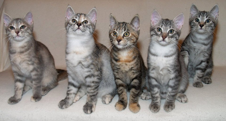 Малыши окраса табби, рождаются от таких же родителей. Европейские кошки, хорошие мамы и всячески помогают заводчикам в уходе за малышами.